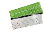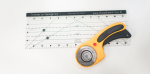 Hoop Sisters Trimmer By George 2.0 is a multi-purpose tool that is perfect for trimming any quilt-as-you-go blocks. This 4 ½” x 12 ½” acrylic ruler has a sturdy crimped aluminum edge, which is used to protect the quilt block front while trimming the bulk underneath.